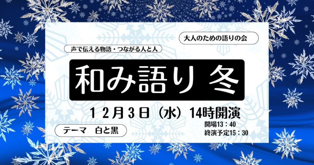 和み語り 冬 2025年12月3日(水)14:00~ テーマ:白と黒 NPO法人語り手たちの会 青葉かたりすと -