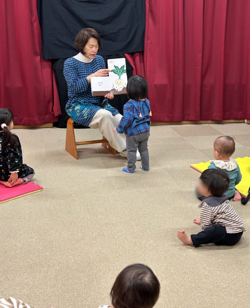 後半のママの絵本は、ページをめくるごとに楽しいどうぶつさんの「こんにちは!」みんなで楽しみました♪