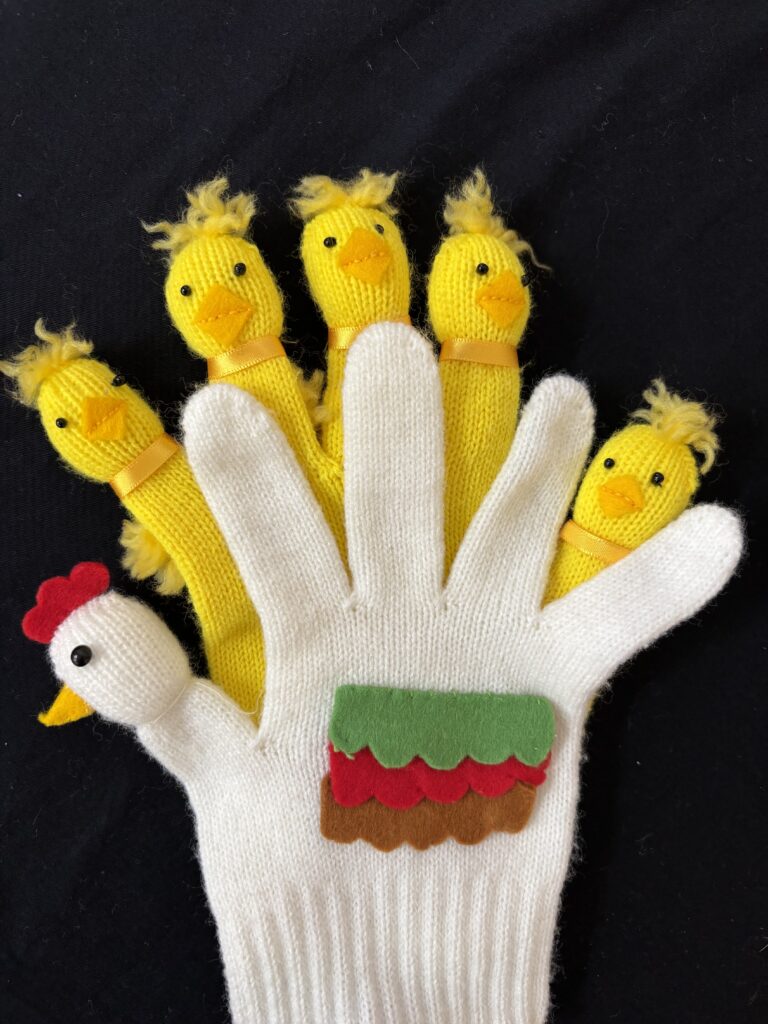 絵本「おんぶに だっこに かたぐるま」と手袋人形「ピヨピヨひよこと にわとりかあさん」
