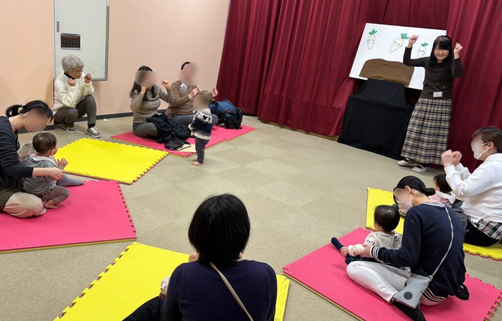 パパもママも可愛い大根ちゃんをすっぽ~ん、と高く持ち上げて、みんなで身体あそびをしました。楽しかった~♪