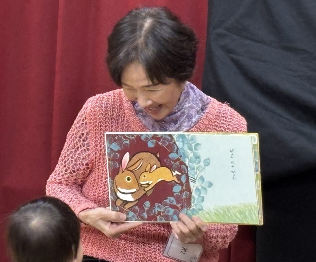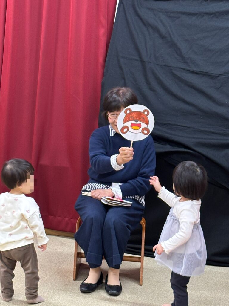 「いないいないばあ」のペープサートに興味津々。みんな、いないいないばあが大好きです!