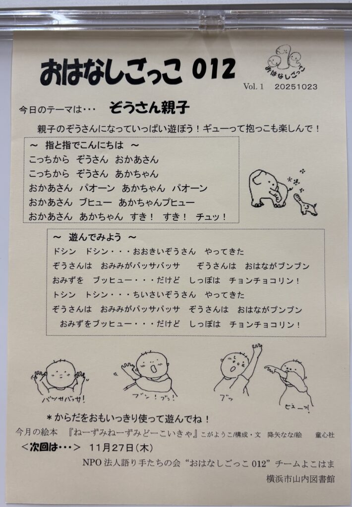 今期は前半6組、後半6組、3か月の赤ちゃんから2歳のお姉ちゃんまで合計12組の親子さんが参加です。