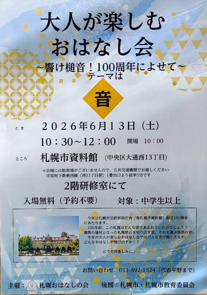 主催:札幌おはなしの会 後援:札幌市・札幌市教育委員会